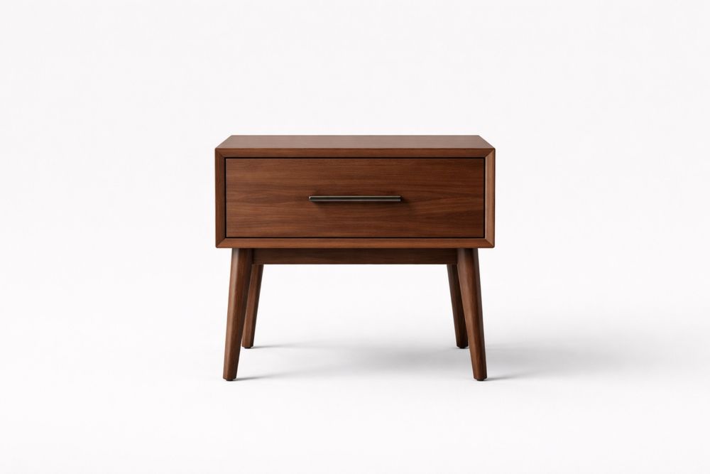 Caractéristiques structurelles : Pieds coniques, poignée en creux sur le tiroir.