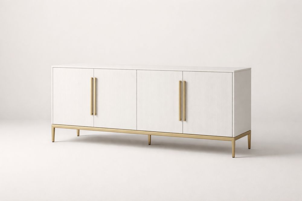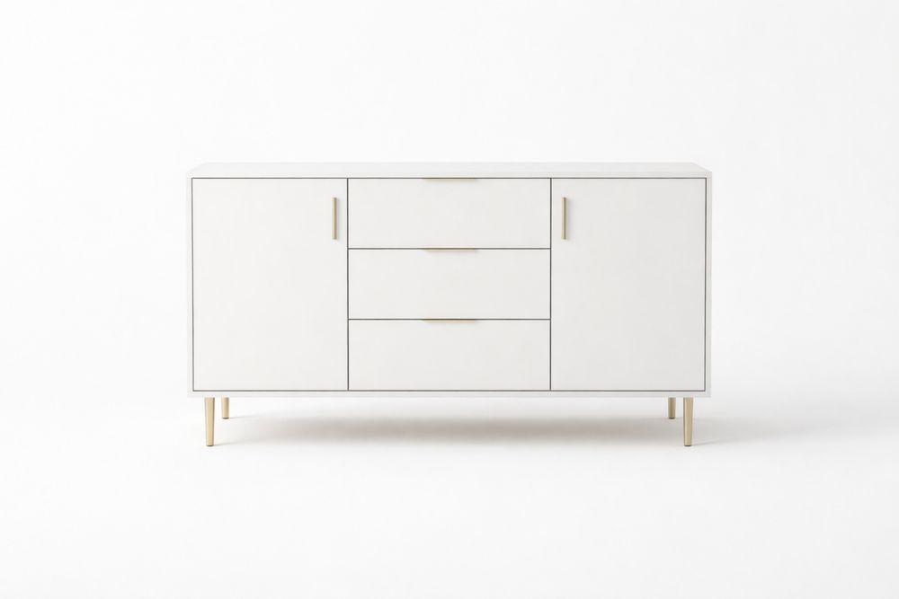 Buffet en bois MDF blanc avec pieds en métal doré