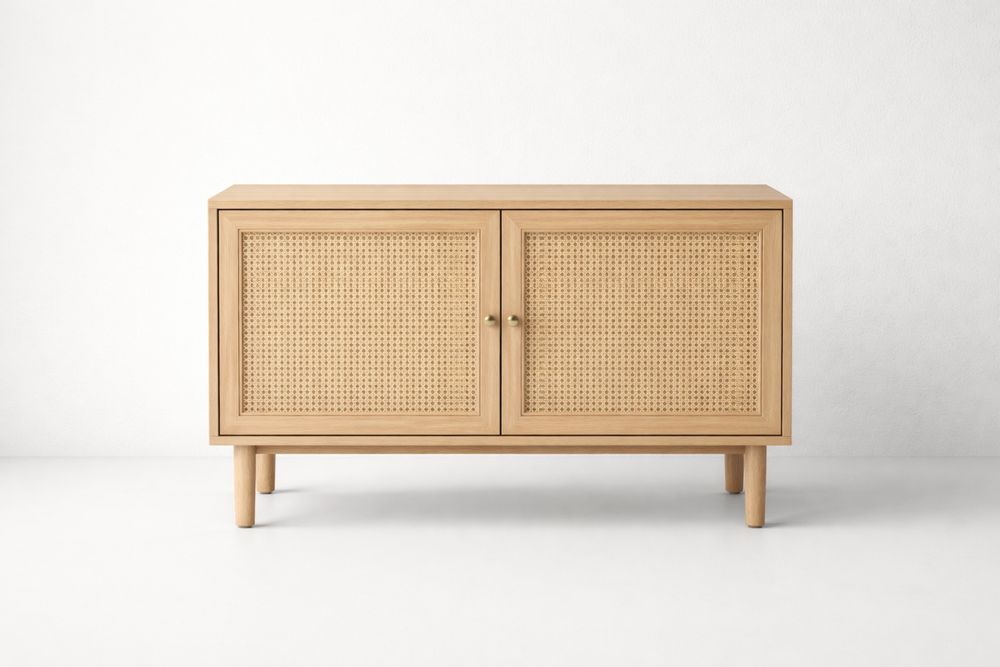 Buffet en Bois Massif avec Portes en Cannage