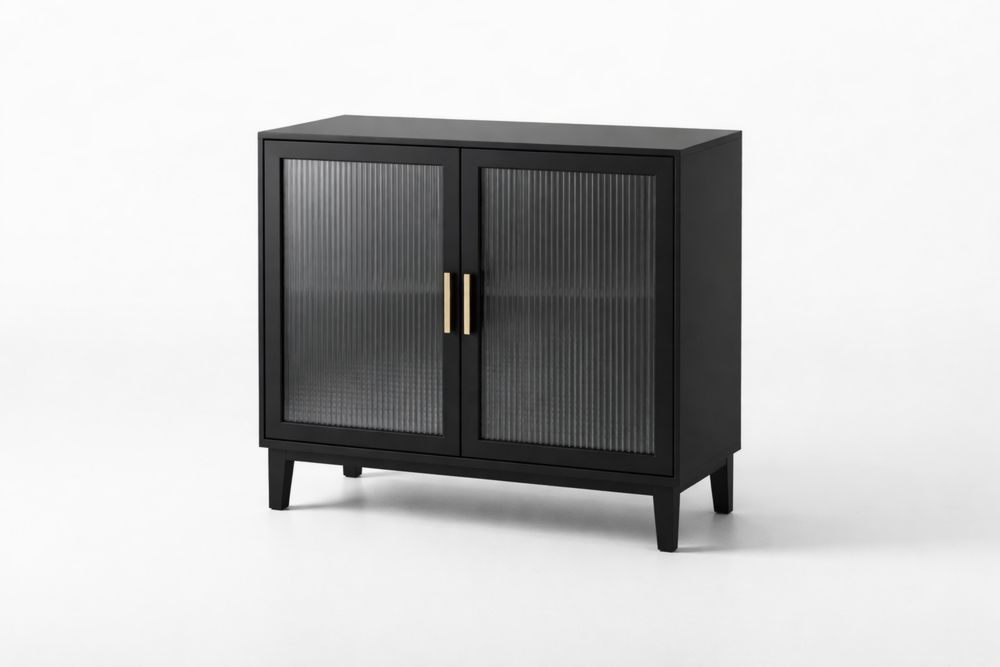 Buffet en bois massif noir avec portes en verre strié