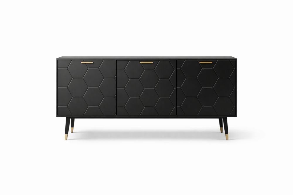 Buffet en MDF avec portes et tiroirs, pieds en acier