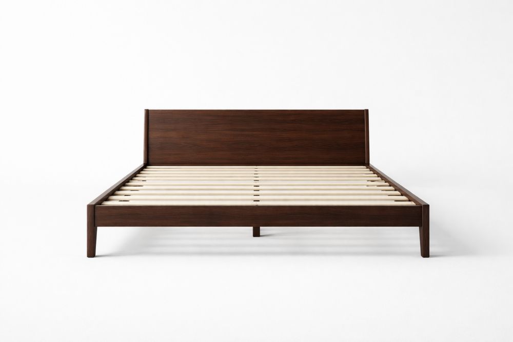 Cadre de lit en bois massif noyer avec tête de lit et lattes 200x160 cm(L x l)