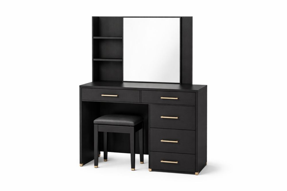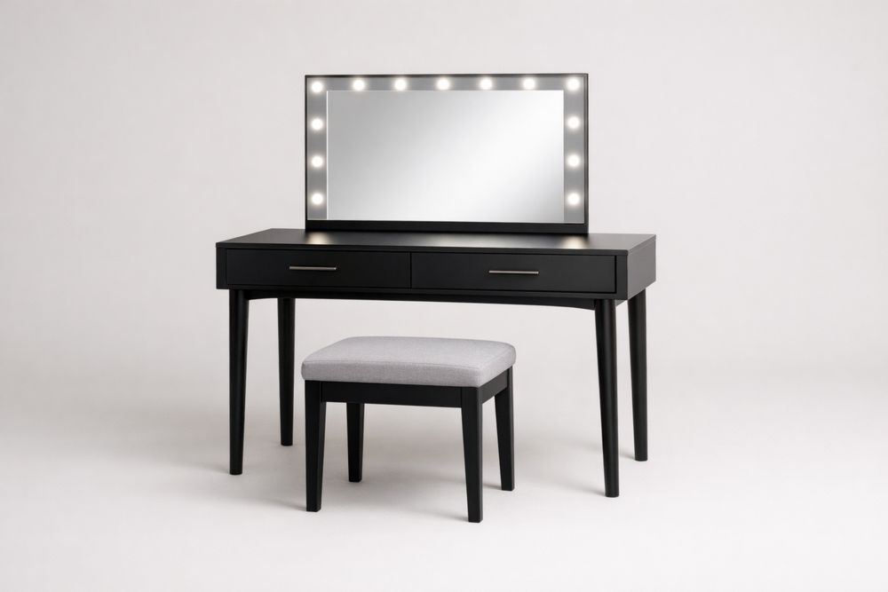 Coiffeuse en bois MDF noir avec miroir et tabouret