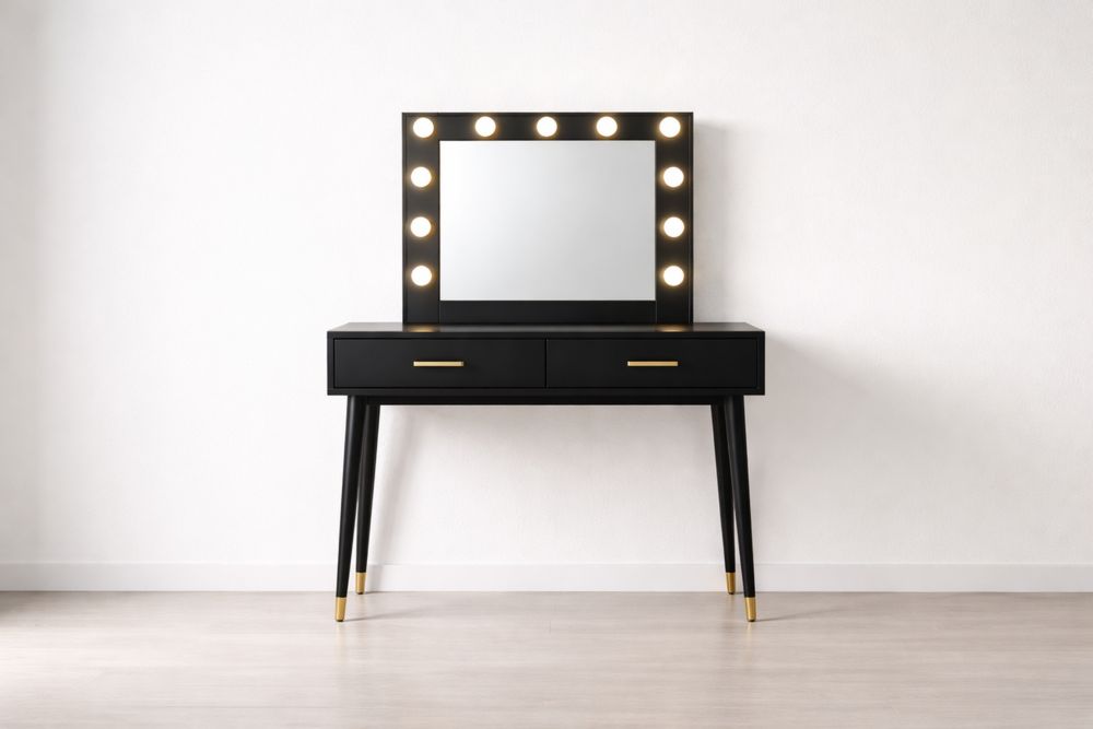 Coiffeuse Noire en Bois MDF avec Miroir Éclairé et Tabouret