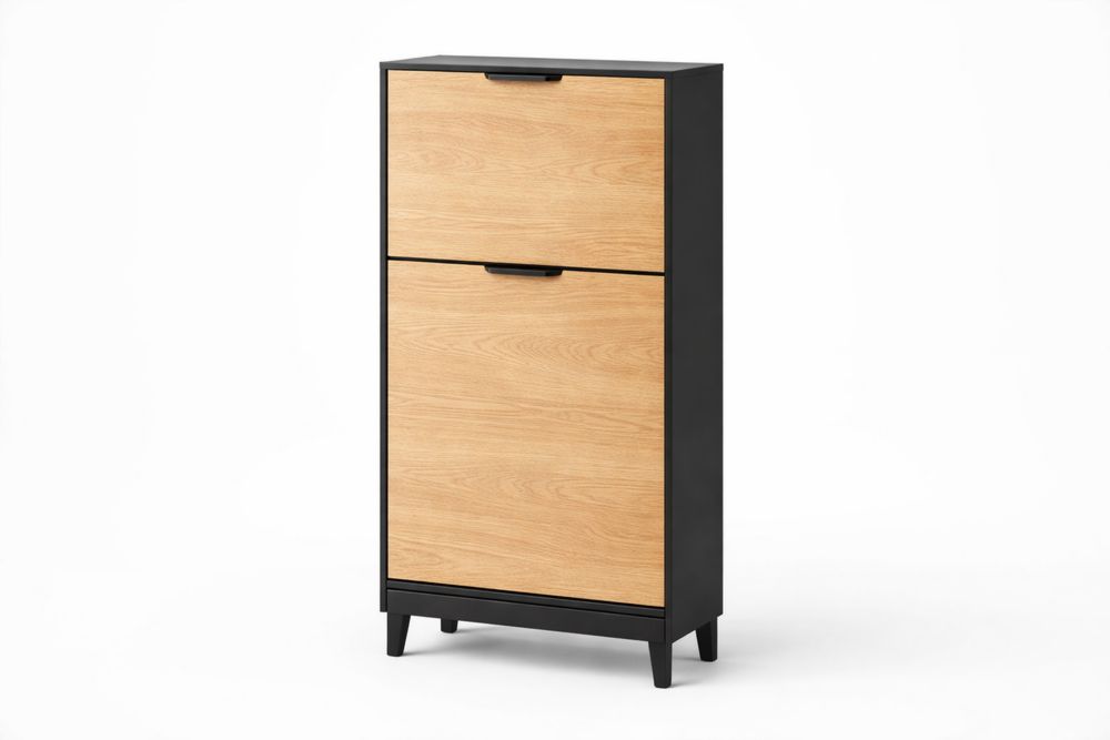 Meuble à chaussures en bois et noir avec deux portes