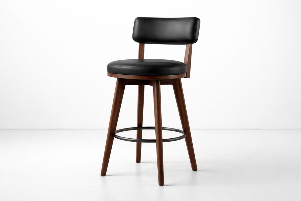 Tabouret de bar pivotant en bois de chêne noir et simili cuir