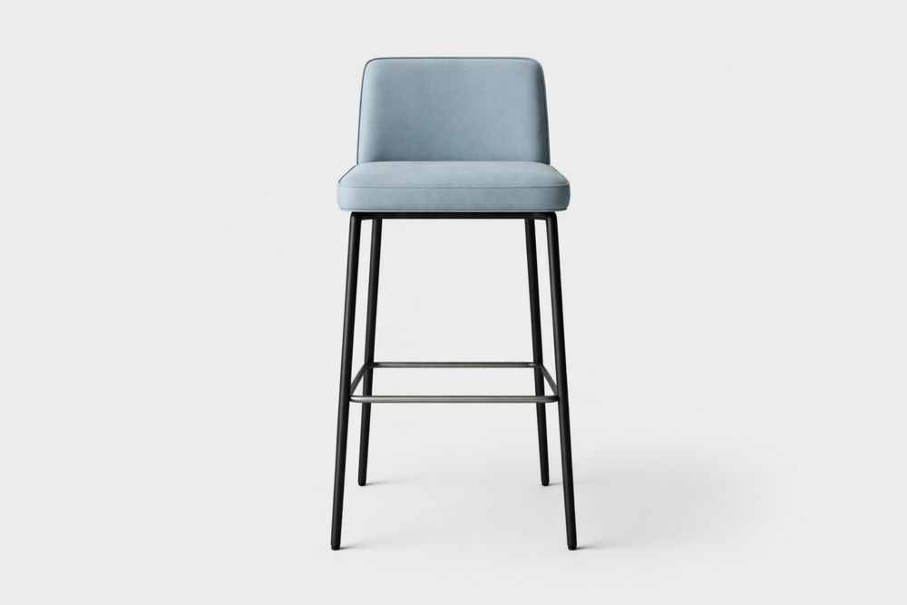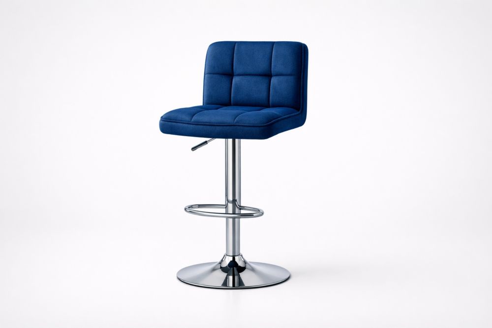 Tabouret de bar en tissu polyester bleu avec cadre en acier