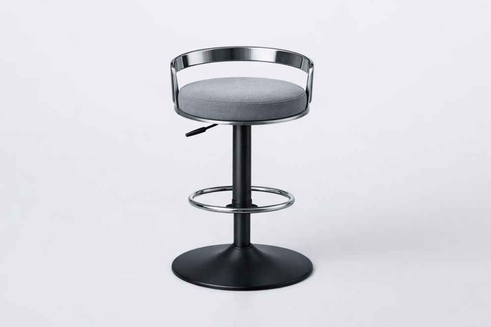 Tabouret de bar réglable en métal avec coussin gris et repose-pieds