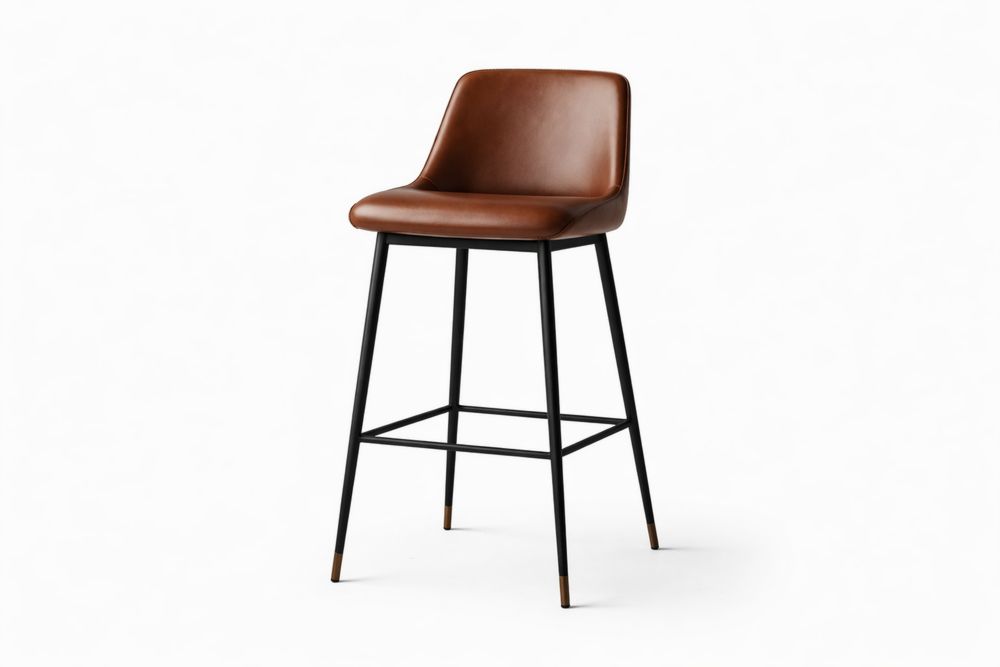Tabouret de bar en bois massif avec revêtement en similicuir marron