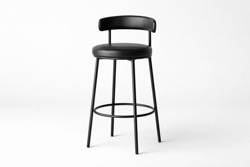 Tabouret de Bar en Acier avec Assise Ronde en Similicuir Noir