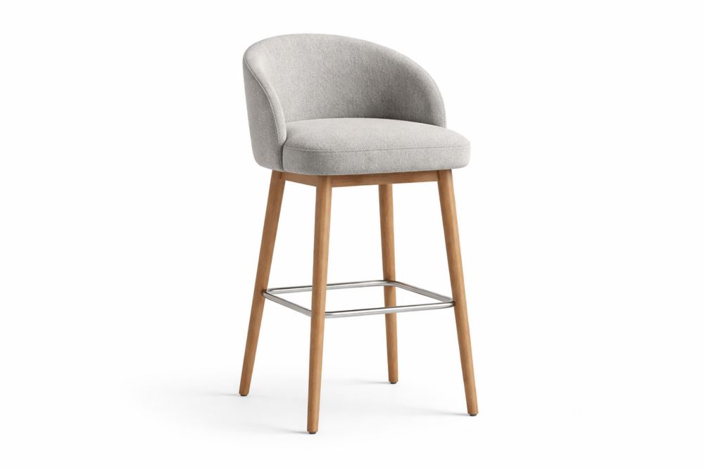 Tabouret de bar en tissu polyester Gris avec pieds en chêne