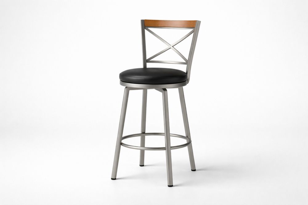 Chaise de bar en bois de noyer avec repose-pieds en acier